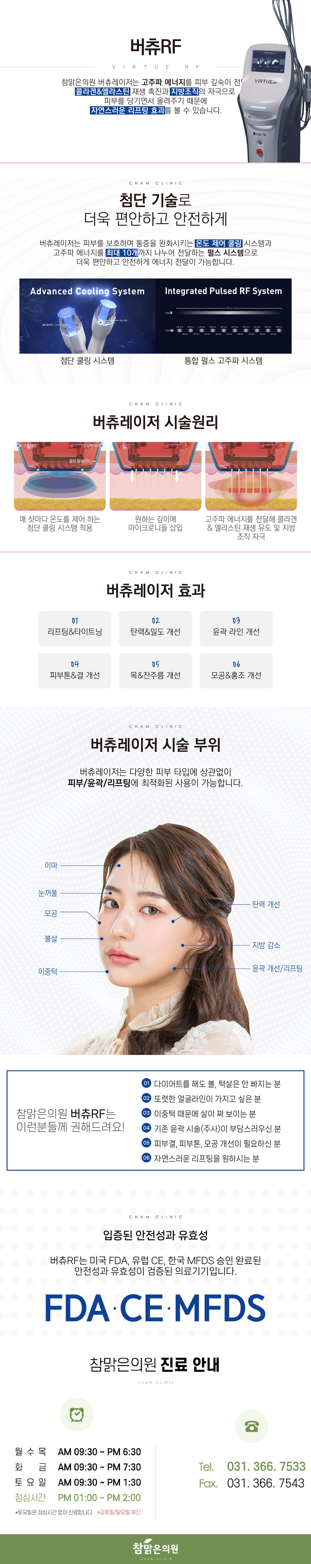 신규 장비 '버츄RF' 도입 페이지 정보 작성자 참맑은의원 댓글 0건 조회 1,355회 작성일 23-03-14 14:38 목록 본문 목록 이전글신규 장비 '텐써마' 도입 23.04.06 목록
